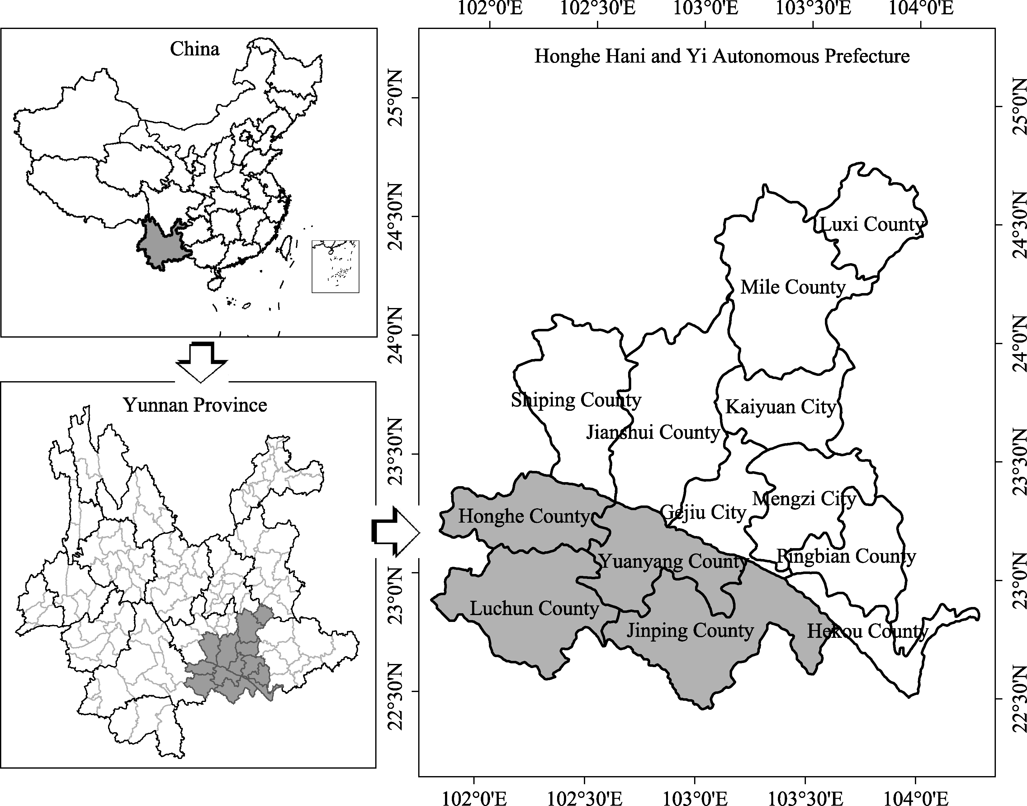 | Yuanyang | 1.13 | 2.62 | 0.05 | 0.66 | 0.5844 |