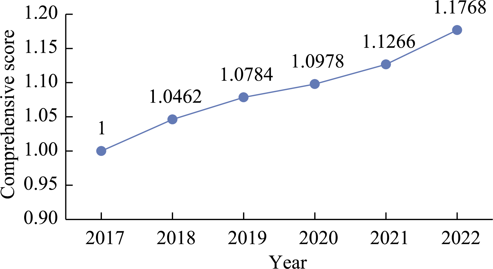 Fig. 1 The economic impact of cultural and creative products of intangible cultural heritageNote: The comprehensive score for the impact of intangible cultural heritage creative products on the economy in 2017 was set to 1. |