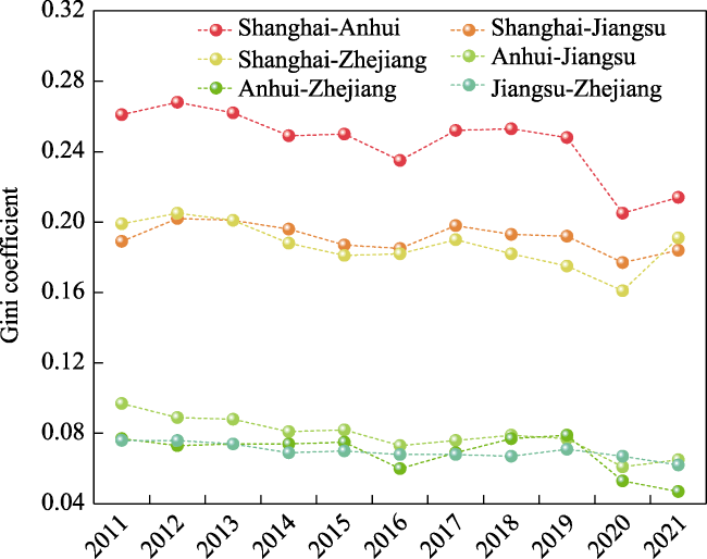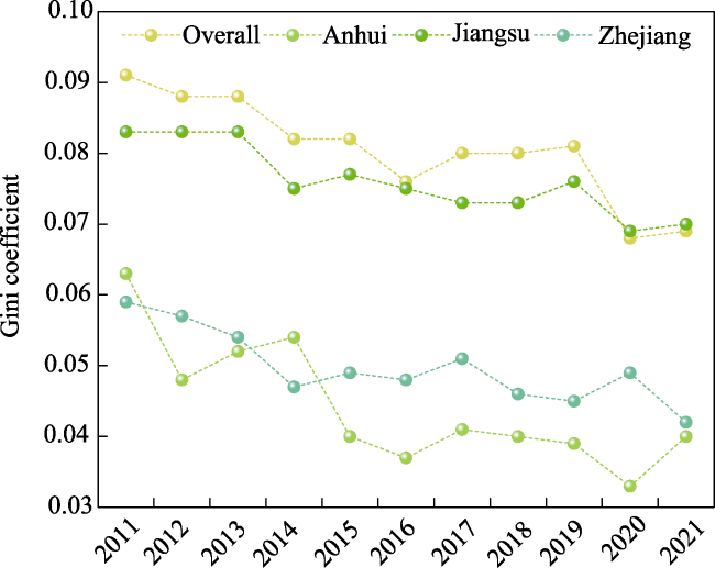 Fig. 5 Overall and intra-regional Gini coefficients |
