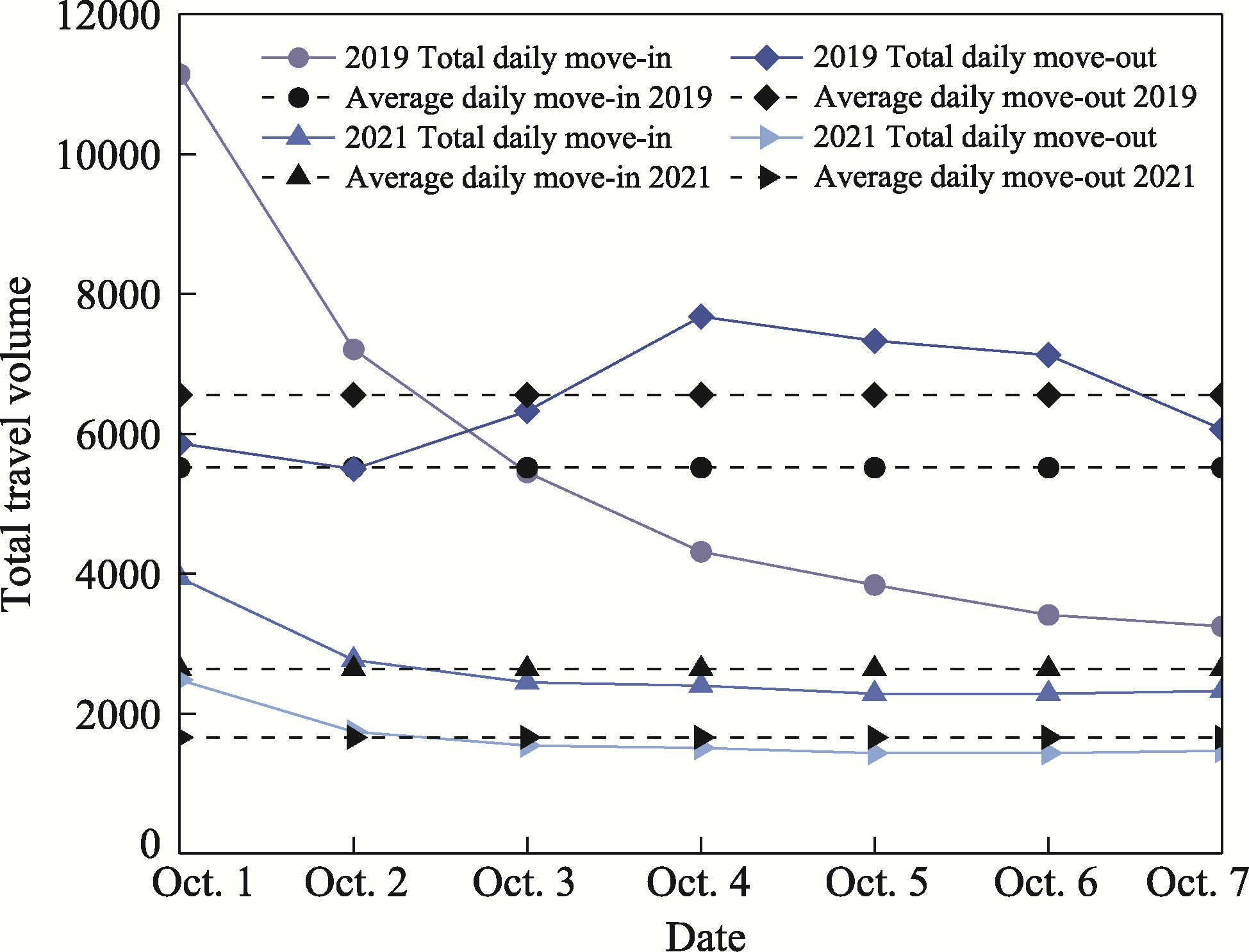 Figure 6 Urban resident travel volume on the National Day holidays in 2019 and 2021 |