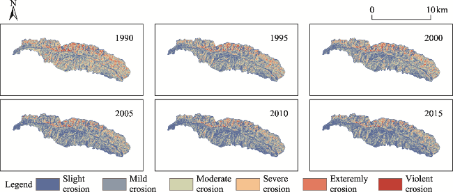 Figure 3 The distribution of soil erosion degree in Luoyugou Watershed |