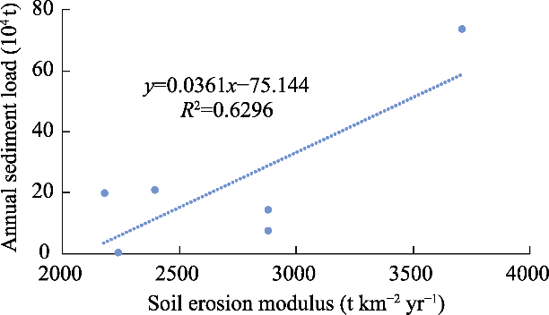 Figure 5 The relationship between soil erosion modulus and annual sediment yield |