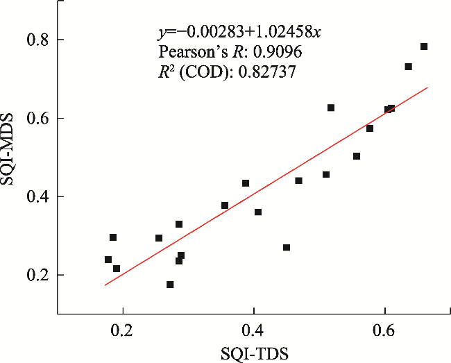 Figure 1 Correlation of soil quality indexesNote: SQI-MDS is the soil quality index based on the minimum data set, and SQI-TDS is the soil quality index based on the total data set. |