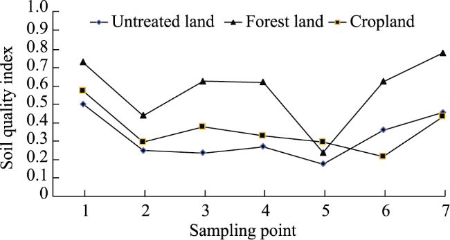 Figure 2 Soil quality index values of different land use types and sampling sites |
