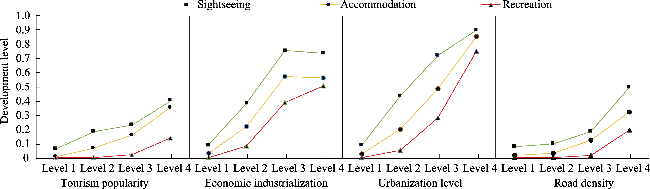 | Driving factor | Tourism popularity | Economic industrialization | Urbanization level | Road density |