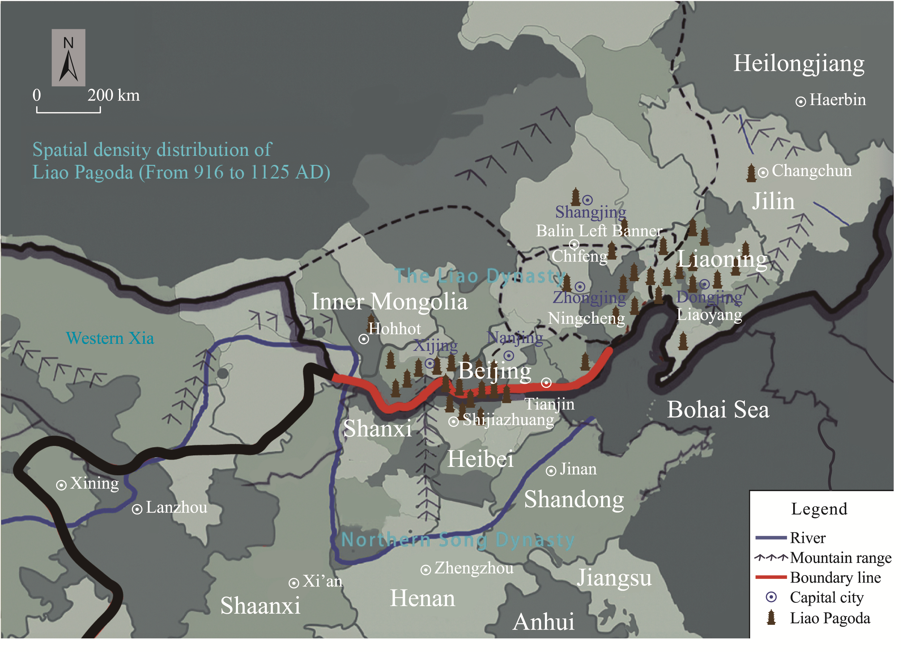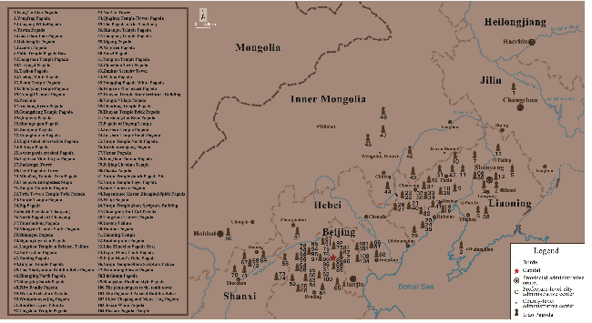 Figure 1 Spatial distribution pattern of the Liao Pagodas |
