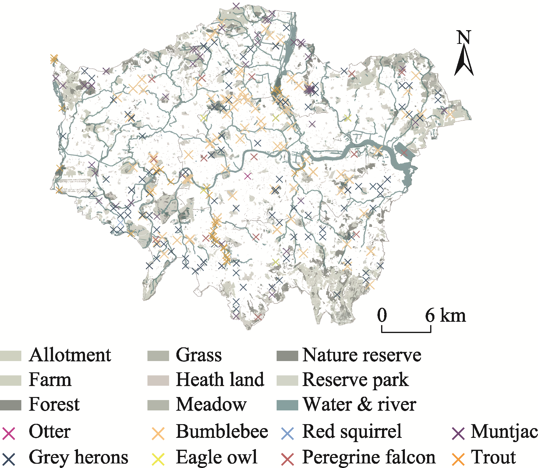 Figure 1 Land use type and species distributions in London in 2018 |