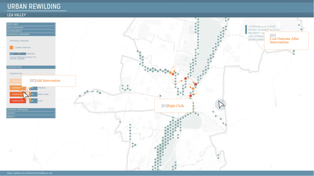Figure 7 Display of the basic operational interface of the interactive map (with added intervention measures) |