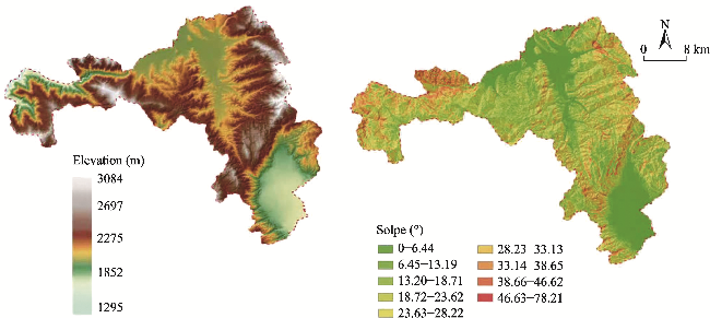 Figure 3 Elevation and slope of the Zhaozhou Basin |