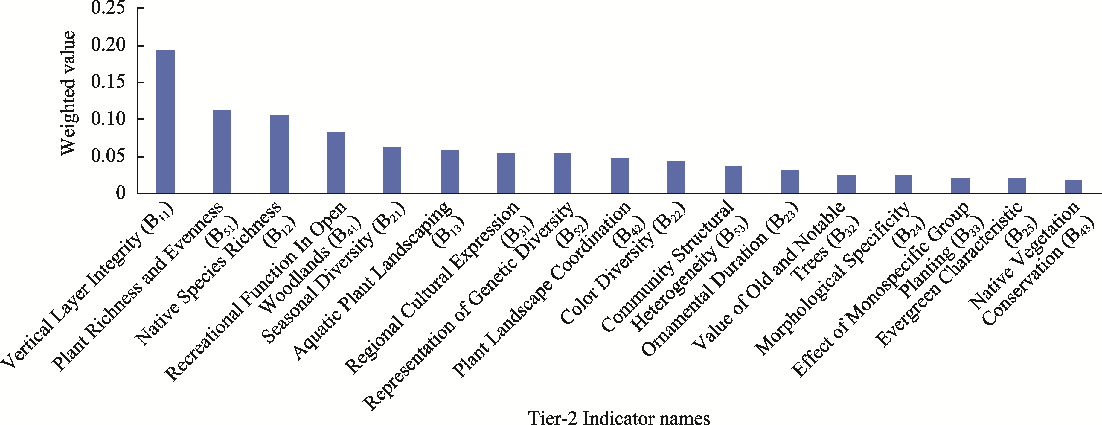 Figure 4 The weights of Tier-2 indicators |